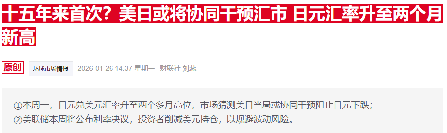 财联社报道提到,市场普遍猜测美国和日本当局可能会采取协同干预措施,干预市场阻止日元下跌。Greetham称,这反映决策者根本不在乎美元的下行风险。