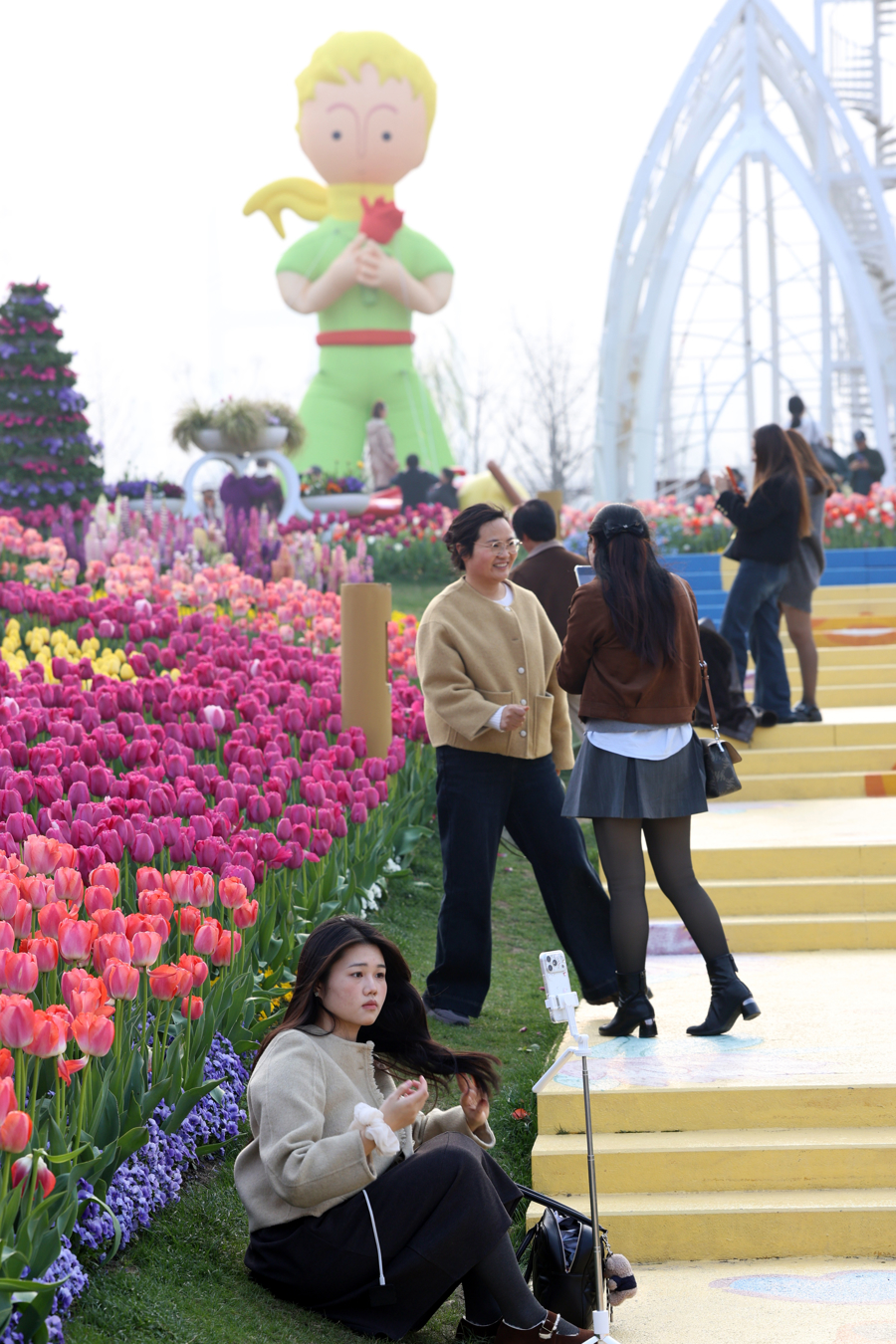 浦江隐私公园内上海遗址花圃“小王子·爱与花的遗址”花展现场,30余万株花草开出五彩花毯。