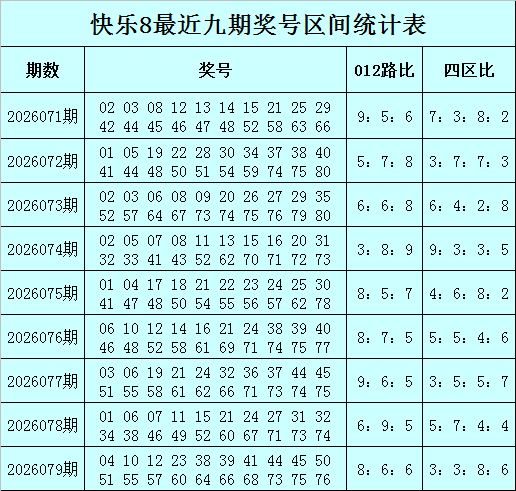 何尚酣畅8第2026080期奖号详尽推选: