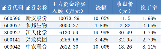 表:4月7日主力资金净买入额逾越1000万元的草甘膦想法股