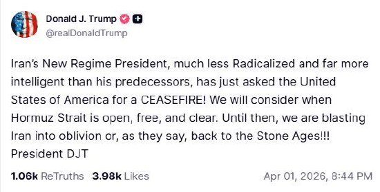 特朗普在其真确酬酢平台发文称,伊朗“新政权总统”已向好意思国冷漠寝兵申请。