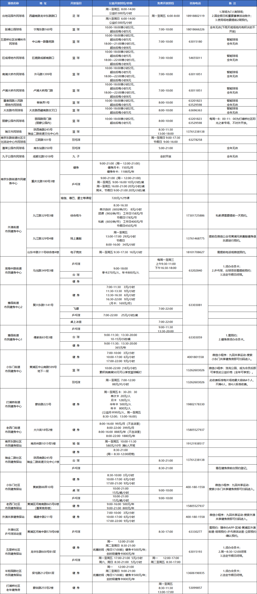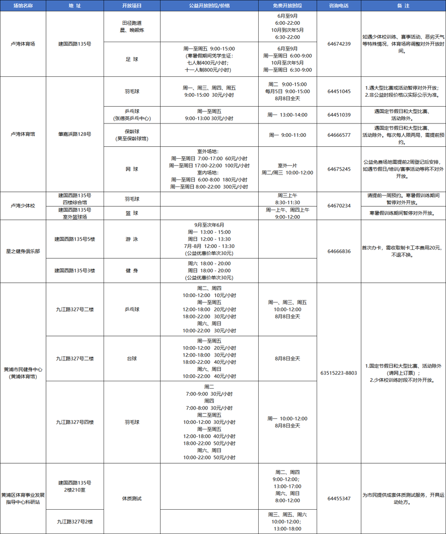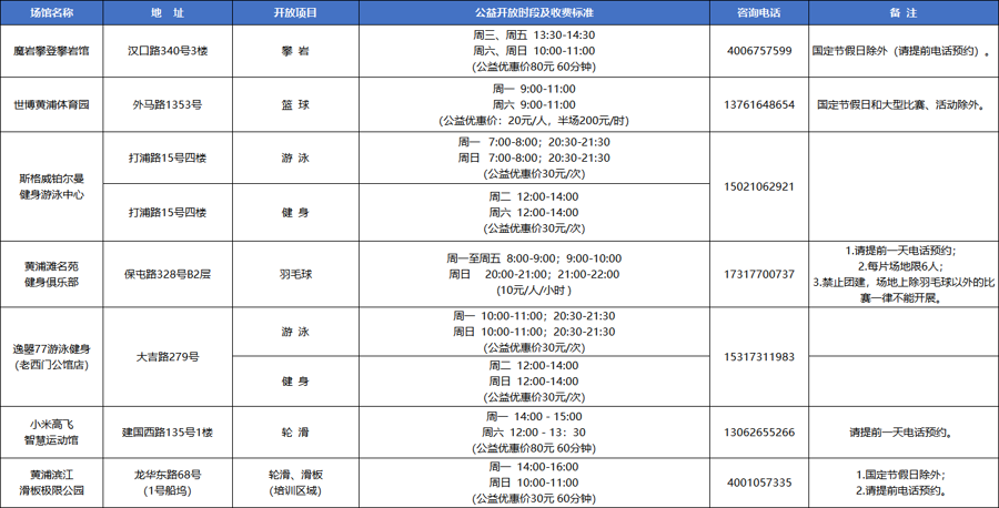 (一)黄浦区体育系统场馆公益绽放一览表