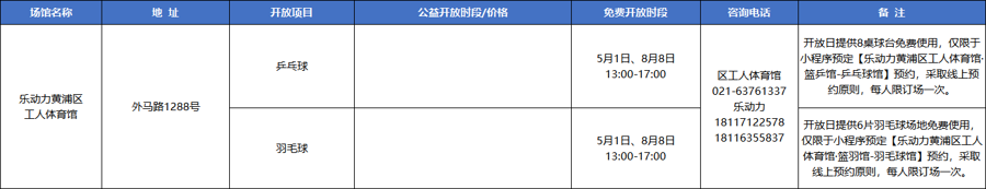 (二)黄浦区总工会众人通顺场馆公益绽放一览表